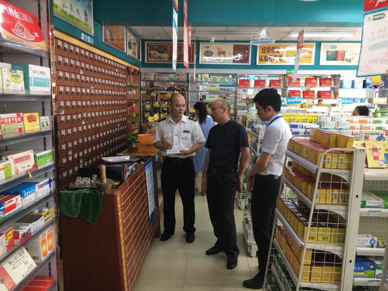 7月18日上午,县市场监督管理局何毅副局长联同县卫生监督人员到龙潭镇铁岗、左潭圩街药店检查药品安全及药店非法行医工作。镇食安办、市场监督管理所人员陪同检查。