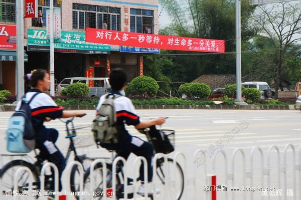 ▲红绿灯设置处附近,县交警大队贴出呼吁市民遵守交通规则的标语。